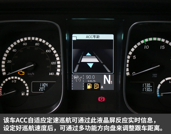 在使用ACC巡航时,若前方车辆速度低于本车设定速度,系统会自动降低车速并与前车保持安全距离行驶;若前方没有车辆或其他车辆不在本车道时,系统将加速回到之前所设定的速度。