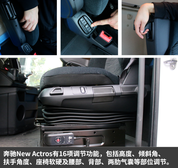 在新的一代奔驰阿克托斯之上,不难发现,驾驶室的功能设计更加趋于人性化,靠近驾驶员的抽屉、柔软的卧铺、各种辅助驾驶设备,一切设计都是以人为主。