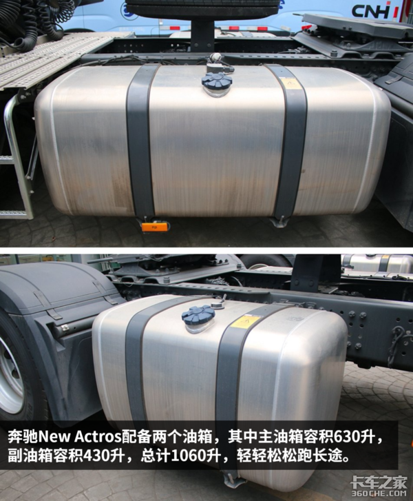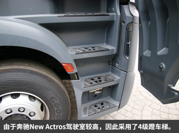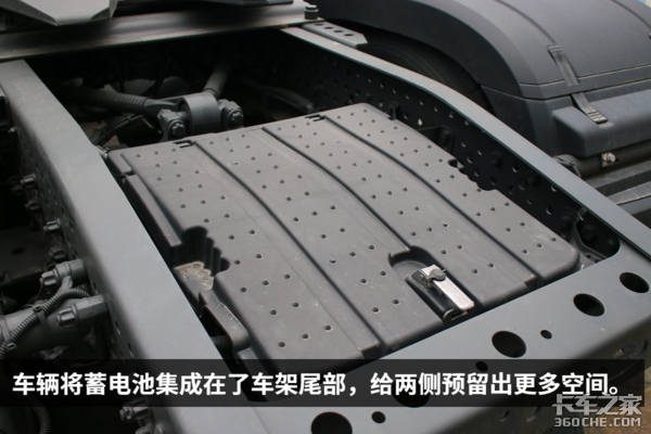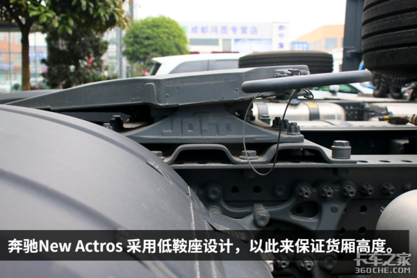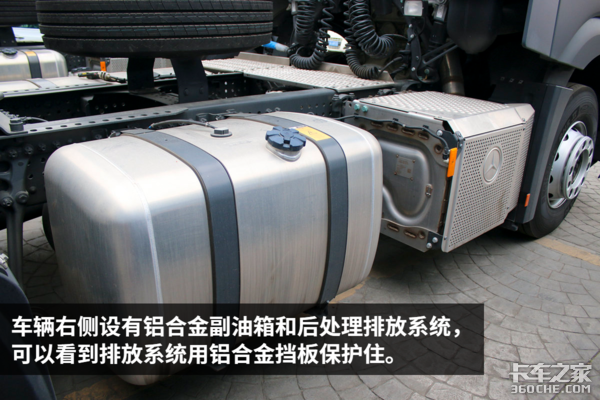 奔驰新阿克托斯将电瓶后移置车架尾部内侧,给两侧预留出了更多改装空间,便于配备更大容积的油箱。