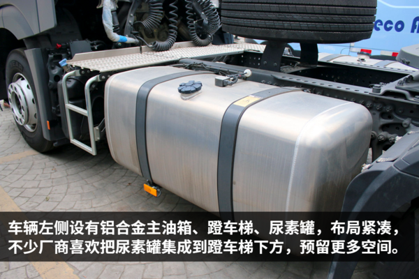 作为一款主打快递运输的车型,时效的重要性不言而喻。因此这款车推出了双油箱设计,总容量为1060升,可以减少停车加油的时间和加油的次数。