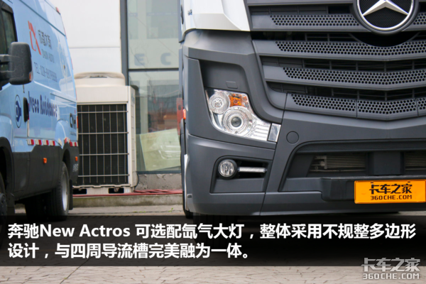 奔驰新阿克托斯可选配氙气大灯,光照范围更广、强度更大,有效改善了夜间驾驶的安全性和舒适性。