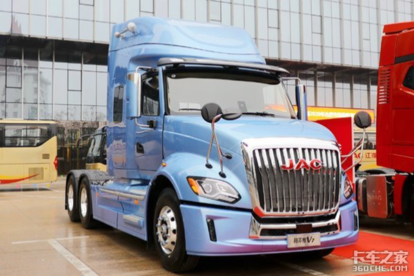 格尔发V7的亮相正式将国内长头车牵引车势头推向了高潮,格尔发V7外观设计与乘龙T7呈现了完全不同的两种风格,格尔发V7线条更加圆润、大气豪华感十足,配合上新颖的车身拉花非常讨喜。