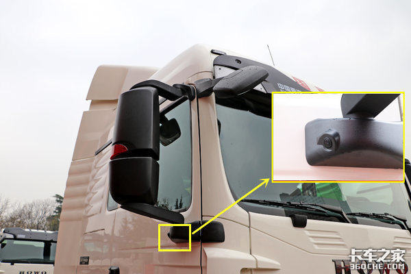 除了左右后视镜上配有摄像头,另外在车内挡风玻璃正前方和车尾也各有一个,为卡友的倒车、行车安全提供了极大的保障。