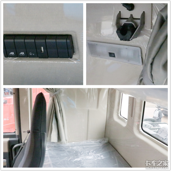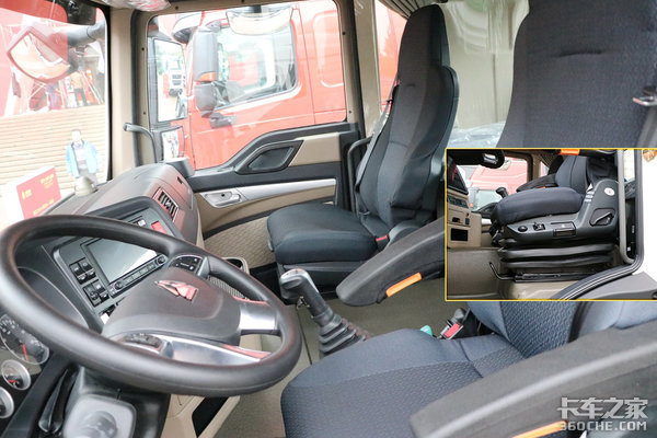 新款豪沃TX主副驾驶座椅均为气囊座椅(带扶手),电动驾驶室举升、四点气囊悬浮等配置,更加人性化。驾驶室的空间也够大,在里面活动自如不是问题。