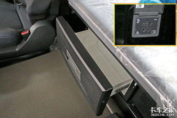 下卧铺配有车载冰箱,可以用来储存一些易腐坏的食物,尤其是在炎热的夏天,冻上一些冰棒,不用停车想吃就能吃上,不要太美滋滋了哦!另外在冰箱的左边还标配有220V 1000W的车载电源,在车上无论是烧水煮茶还是煮简单的食物都很不错。