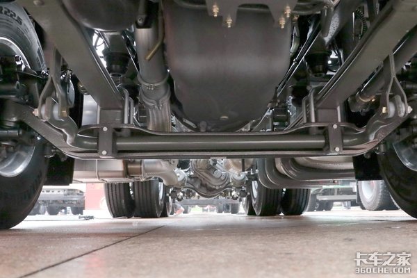该车配备型号为MCY12BGK的12吨级后桥,后桥速比为3.7,车辆总速比为2.89。前轴采用7吨鼓式(可选7.5吨盘式)免维护前轴,后桥采用全新12吨鼓式免维护驱动桥。