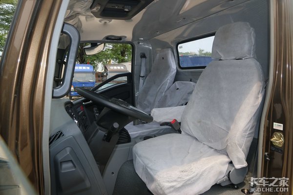 采用皮质座椅,主驾驶位标配扶手,符合目前的用户需求。手刹采用后移设计,驾驶员即便不放倒座椅也能正常平躺休息。当然,有需求也可选单排卧铺和排半的折叠卧铺。