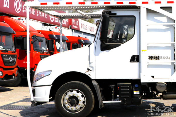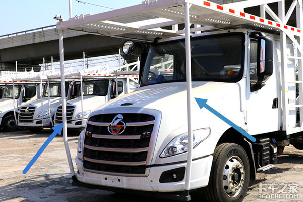 车头两侧增加了用于支撑车顶平台的支撑杆,它不仅能保证平台承载力,而且对于一些刚接触长头车的卡友,这两根杆还能起到定位车头的作用,让驾驶员可以更好掌握车头宽度,避免剐蹭事故发生。