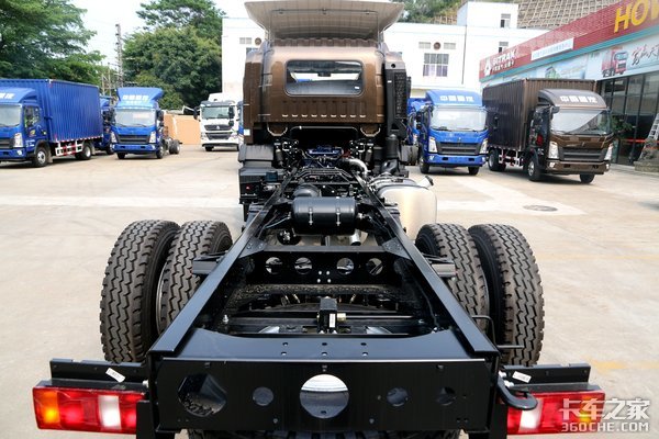这款G5X前桥使用11片、后桥9+8片钢板弹簧,轮胎规格为10.00R20,这样的配置可以说是目前的主流配置,能够满足用户的载重需求。