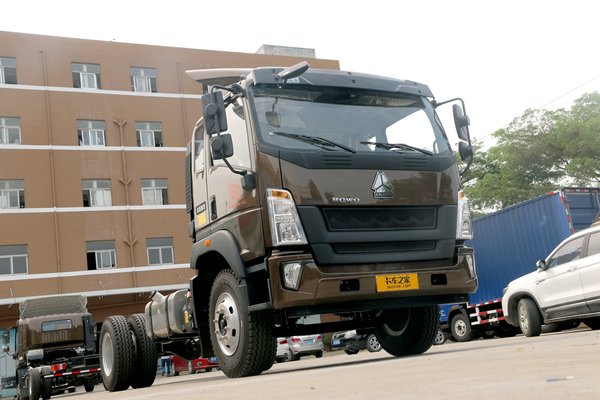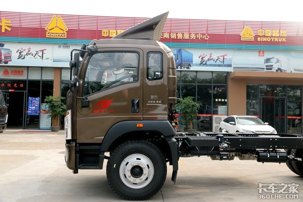 豪沃G5X中卡按载质量可分为轻载、标载、重载三个版型,轴距从4200-5600mm,本期实拍这款为最小轴距的车型,装配排半驾驶室,主要针对建筑材料运输、农副产品运输等。