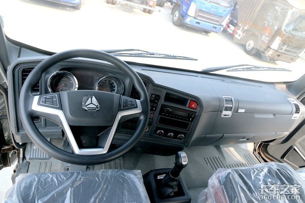 总的来说,整个驾驶室的设计还是比较高大上,例如主副一体式真皮座椅、全包内饰以及宽卧铺等,并且偏向于重卡的风格。