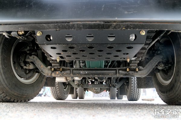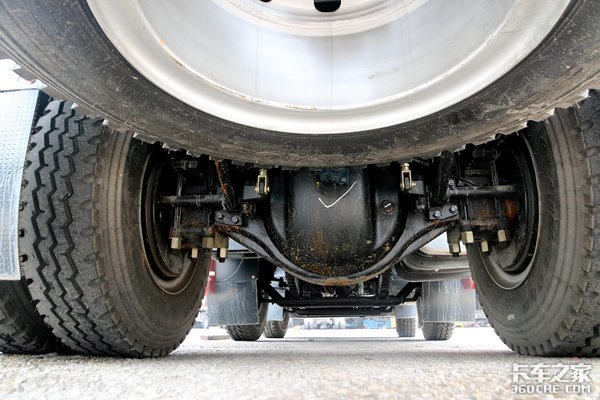 后桥采用了13T级的457窄体后桥,悬挂采用特强型前10后8+9片板簧,再配以规格为11.00R20的轮胎,该承重配置完全能应对装载15吨的需求。