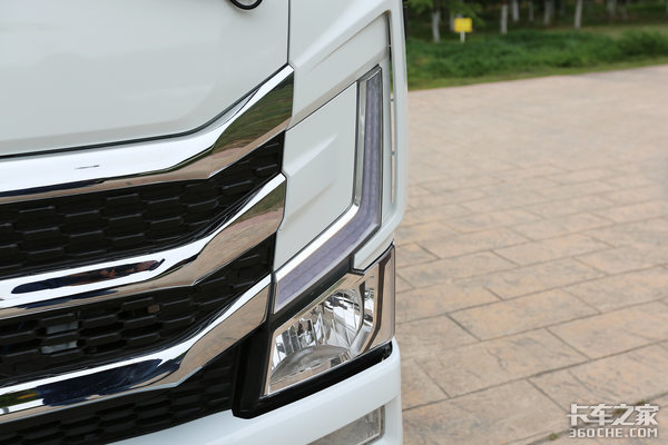 外观方面,上汽跃进H500三条大尺寸的镀铬饰条搭配黑色的中网,让整个前脸看起来非常立体。三条饰条完美的和导流槽以及日行灯进行契合,让整个前脸呈现U字造型,不同于国产轻卡普遍的“日系脸”,前脸造型上面,采用了大量硬朗的线条,让前脸更容易被年轻司机所接受。