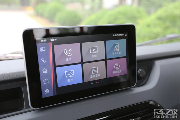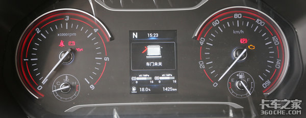 中间的液晶显示屏则可以显示车头朝向、时间、气压、尿素量等显示,中间区域则可以通过方向盘上的多功能按键调取车辆信息,方便驾驶员随时了解车辆当前状况。
