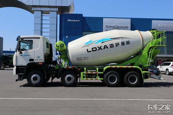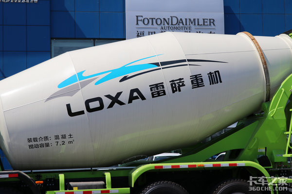 这台欧曼GTL 8×4搅拌车使用了同为福田戴姆勒旗下的雷萨重机上装。罐体最大搅拌容积7.2立方米。当然这只是最大装载量,实际运输时咱们还要考虑上下坡会对液位造成的影响。