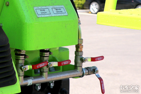 对于一些刚接触搅拌车的卡友来说,为更好帮助他们完成对车辆的必要清洁,此车还在不同的阀体位置粘贴了中文标识,使用更加直观有效避免了误操作。