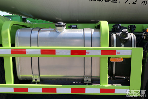 水罐是一台搅拌车必不可少部件,在运送完混凝土后咱们需要对罐体进行彻底洗刷。为满足这一点,欧曼GTL 8×4搅拌车在罐体前方安装了一个超大水罐。水量清洗罐体完全够用,并且它还带有液位计,咱们可以随时了解水量剩余情况。