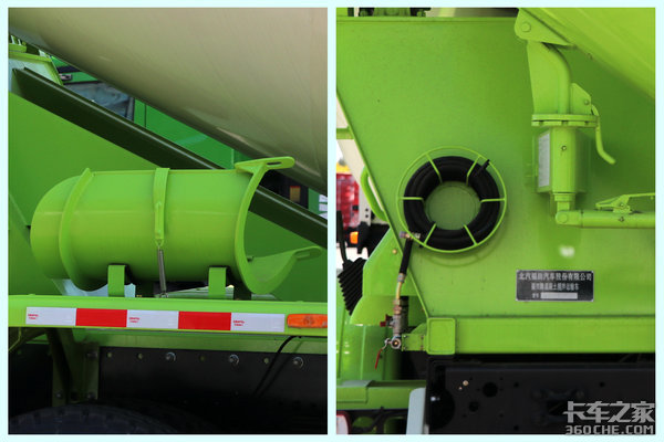 上装后方,欧曼GTL 8×4搅拌车像大多数搅拌车一样,配备了高压水枪和加长卸料斗,配置中规中矩。毕竟作为一辆工程车,实用才是它的第一要务,在这也要提醒各位卡友,使用完水管一定要缠绕好,谨防出现水管拖地等现象发生。