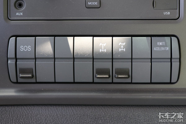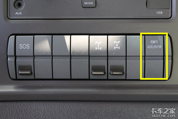 中控按键部分,欧曼GTL 8×4搅拌车相比于普通车型增加了一个全英文按键,这段英文翻译过来的意思为“遥控油门”,当我们需要下车操作上装时,便可开启此功能,进行车下控制,该功能的出现能有效减少上装误操作风险,安全性得到保证。