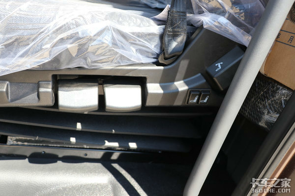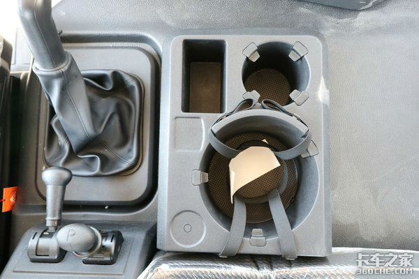 虽然是凸地板驾驶室,但是凸出的地板表面较为平整,对空间影响较小,设计师贴心的在换挡杆边上设置了多个杯架和一个暖壶架,非常的实用。
