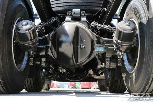 后桥为鹏翔单级减速驱动桥,速比4.111,通过卡车之家车速计算器测算,这款车1000-1400转/分钟的经济转速区间车速在65-90km/h,完全能满足短途运输的车速要求。