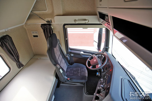 气囊座椅搭配上四点气囊悬浮的驾驶室以及气囊悬挂,无论是驾乘还是躺在卧铺上休息,都是比较舒服的。