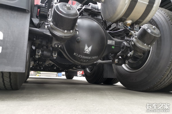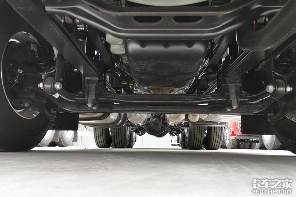 实拍车辆前后桥均采用少片簧钢板悬架,前2后3片板簧设计,速比3.7,适合多种综合路况行驶。除此之外,还可选配气囊悬架,为车辆带来更好的舒适性和平顺性,适合快递运输、专线物流、甩挂模式等场景。