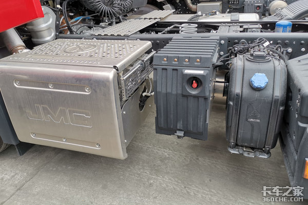 江铃威龙HV5左侧布局明显紧凑许多,设有后处理系统、蓄电池、尿素罐,利于其他零部件空间拓展。