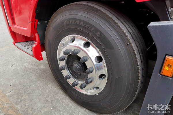 该车配备三角品牌轮胎,铝合金车轮,规格12R22.5。