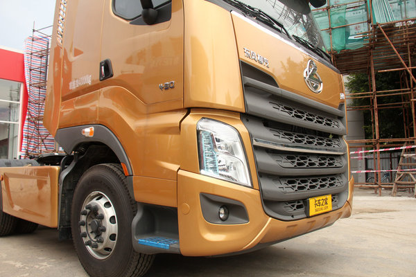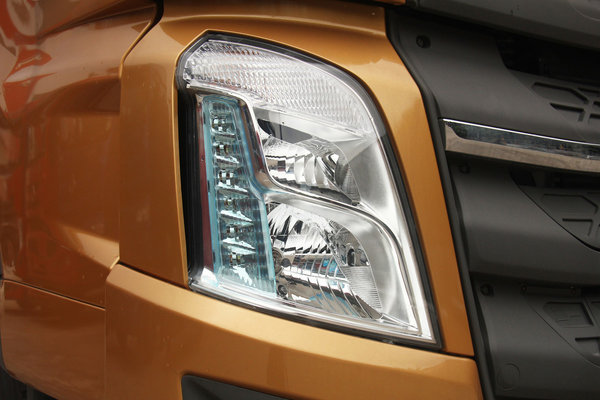 为优化风阻,这台乘龙H7在大灯组的外侧设置有导流槽,以更好的分流车头部分的风阻。