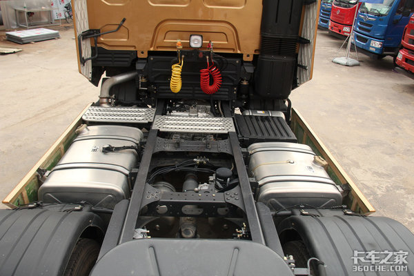 相比于亮点十足的外观设计来说,底盘设计只能说满足基本需求。但是在轻量化设计方面,这台乘龙H7还是下足了功夫的,包括单层车架、轻量化玲珑胎、铝合金油箱、储气罐、铝合金外壳变速箱等等,这都为其载货量的提升作出了一定的贡献。