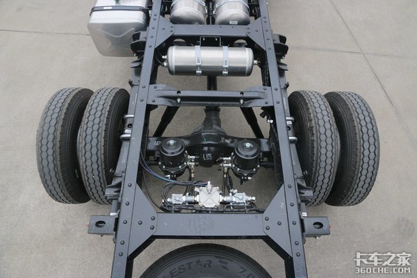 后桥采用重汽MC技术产品,速比为4.875。采用气刹制动,并且配备断气刹,有效保证制动性能,这在同级车中较为罕见。
