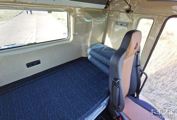 奢华版的卧铺相比之前变化不大,汕德卡的卧铺宽度不是国产卡车中最宽的,但是舒适性可以说是国产高端卡车中数一数二的。得益于平地板驾驶室,卧铺距离发动机的位置比较远,卧铺不会受到发动机的炙烤,在休息的时候能有一个比较舒适的温度。
