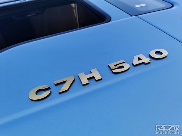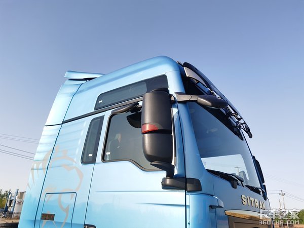 除了涂装方面的亮点以外,还有一个比较明显的变化就是驾驶室的高度。相比普通版本的驾驶室,超高顶驾驶室高度增加了20cm左右。最明显的变化就是前挡风玻璃和两侧车门上方的小侧窗,超高顶驾驶室第一眼看上去给人的感觉就是“大”,个头大、大风玻璃大,配上蓝色的涂装,让车整体更加趋近于一件完美的工艺品。