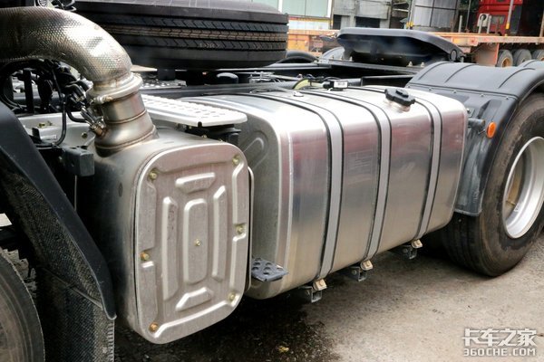 在车架左侧,装配了450L的铝合金油箱,具有防锈蚀和重量轻的特点。