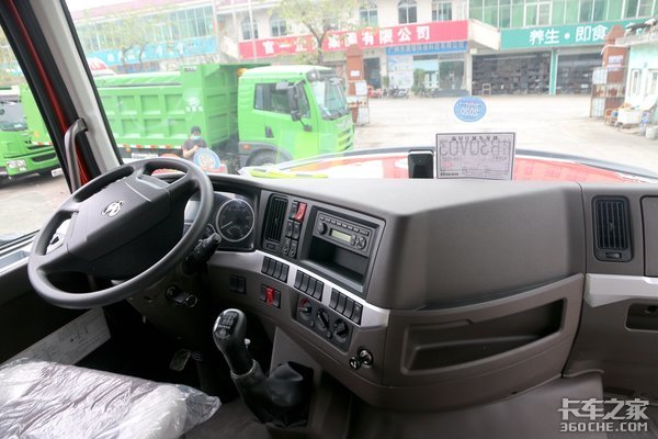 与之搭配的是法士特12挡超速挡变速箱,其壳体采用了铝合金材质,整体具有强度好、重量轻的特点。另外,该变速箱头挡速比为12.1,所以拥有在满载起步时比较轻松的特点。