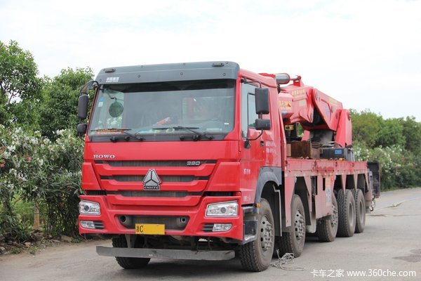 通常特种机械都会使用可靠度高的进口底盘,时至今日国产底盘都有了很大的进步。近日笔者就见到一台上装为随车起重机的重汽5轴底盘。由笔者带大家来看一下。