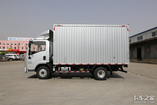 厢车和仓栅车标配导流罩,并且导流罩两边均做了流线性设计,符合空气动力学,可以在行车过程中降低风阻,提高燃油经济性。货厢顶部左右两边都设计了反光标识,夜晚行车可以更好的提醒其它道路参与者。