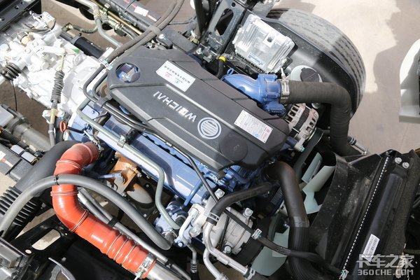 宽体版陕汽轻卡K3000可选择搭载潍柴110-160马力段发动机,实拍的这款K3000搭载的是潍柴WP2.3NQ130E60发动机,最大输出功率为130马力,峰值扭矩可以达到380N·m,达到了国六排放标准。