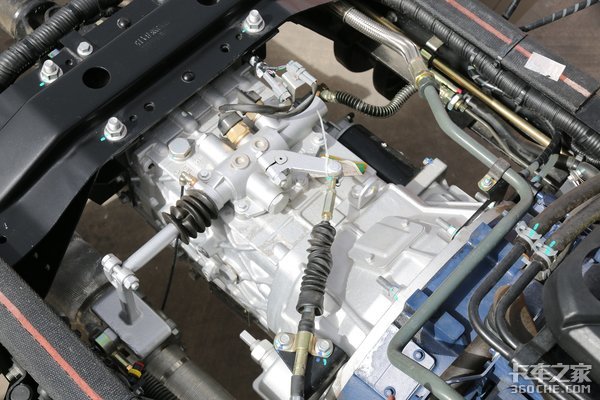 与之匹配的变速箱为法士特C6J45TB铝壳变速箱,全同步器,最高挡为超速挡,头挡速比大,在起步爬坡时可以有充足的动力输出。6挡箱各挡位之间齿比的极差更小,更适合工况比较复杂的道路。