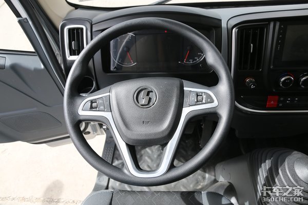 陕汽轻卡K3000标配多功能方向盘,左边设计有定速巡航,右边设计有多媒体的控制按钮,行车过程中手不离方向盘就可以操作,更加安全。