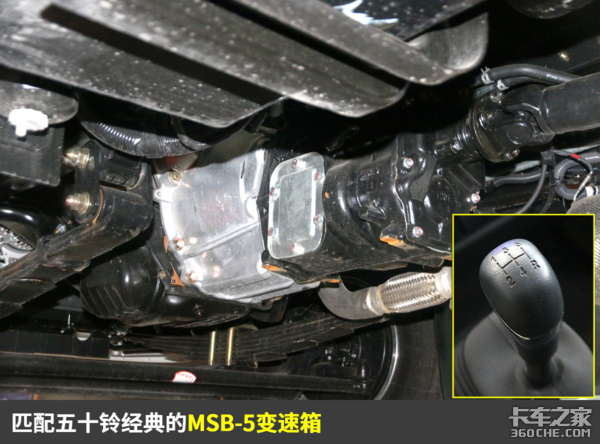 五十铃M100配置全新800mm宽底盘,并且通过了正向极限工况分析、耐久试验。采用R055的5T级后桥,速比为5.375。该桥使用先进设备和工艺生产,在提高承载能力的同时更加轻量化,底盘自重控制在2.3吨以内。