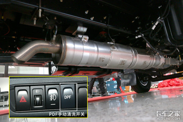 后处理通过EGR+SCR+DOC+DPF+ASC路线达到国六排放,因此排气管看起来也比国五车更复杂更粗壮。而M100的DPF处理分为自动和手动两种模式,正常情况为系统自洗,如故障灯亮起,用户则可手动按下开关进行清洗,故障处理快速又省心。
