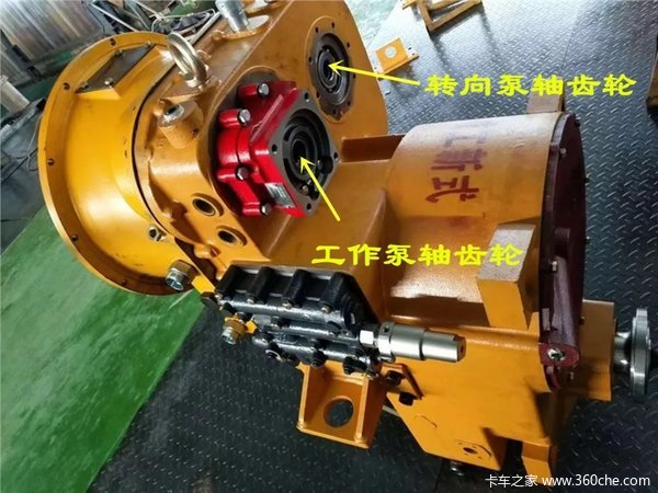 由于泵轮是通过液力变矩器泵轮与发动机相连的,所以只要发动机工作,工作泵和转向泵就同步工作,不受变速箱的影响。如果工作泵或者转向泵坏了,直接可以从前面拆下来,不需要分解变速箱。