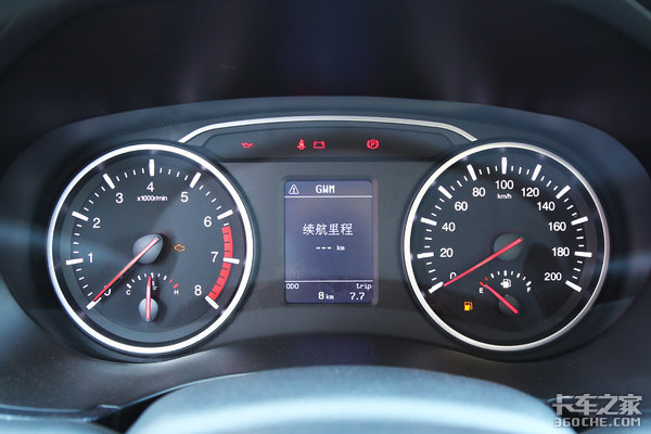 仪表盘采用了传统的机械式指针设计,清晰易读,中央安放了一块单色液晶屏幕,用以显示车辆信息。