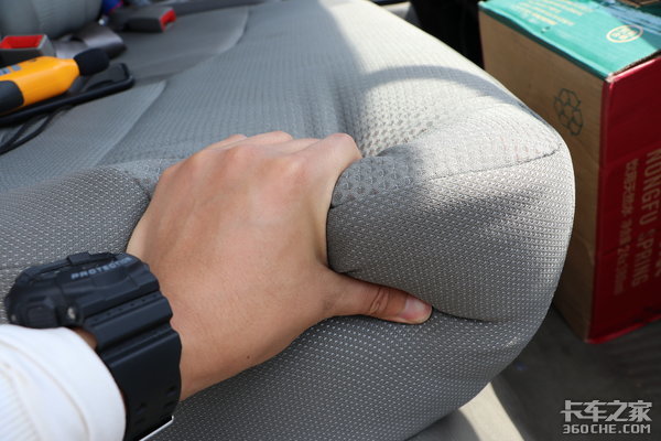 乘坐舒适性良好的原因也源自于江铃凯运蓝鲸车型配备的座椅,虽然采用织物座椅,但是坐垫填充物很充实,坐起来软软的很舒服,并且驾驶室内整体坐姿的人机工程学很不错。