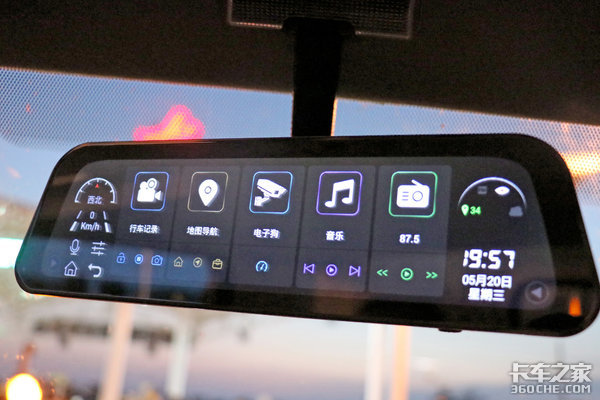 整个驾驶室内亮点就属这块多功能流媒体后视镜了,它集成有行车记录仪、倒车影像、左右转向辅助、多媒体、高德地图、电子狗等多种功能,整体内配软件可用可玩。这在增强行车安全性的同时,也让我们在使用这台车时会变得更加享受。
