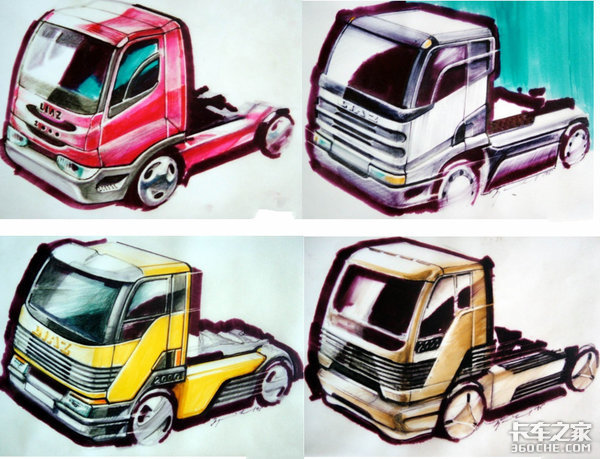 整个车辆定型以后,设计团队设计出三款1:5比例的驾驶室外观,更多的是体现在早期设计草图中的设计类型。