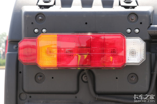 来到车辆尾部,最吸引人的要当属这个糖果造型的尾灯,虽说在接上挂车后,这个尾灯就被挡上了,但江铃重汽并没有忽略它,而且尾灯的线束部分使用了明线,后期维修也相对便捷。