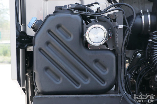 车身右侧为主油箱和电瓶,尿素罐位置被挪至了驾驶室后方,其实这也是江铃威龙HV5为续航所作出的妥协,尿素罐挪至了驾驶室后方可以使底盘的更多空间可以留给油箱使用,设计比较讨巧。